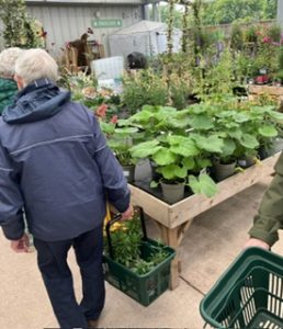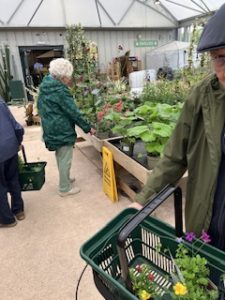 Rain failed to stop play for the Memory Cafe Amblers on St.Swithin’s Day: their visit to Combe Garden Centre neat Honiton gave them plenty of ambling space under cover. A good shopping opportunity was followed by an excellent tea and a gentle trip home courtesy of Trip buses.