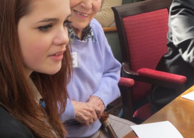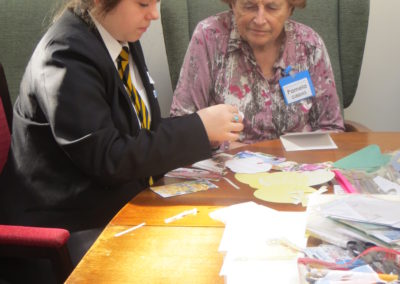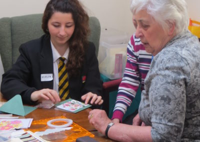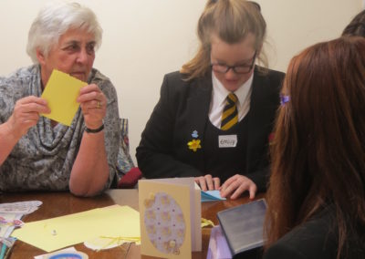 Here are some photos of the day Sidmouth College students came along to the Memory Cafe to reminisce, make Easter cards and play some old-fashioned games.