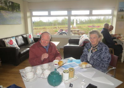 Afterwoods, everyone enjoyed a cream tea, a chat and a fascinating talk by Ken, bee-keeper at Blackbury Honey Farm, whilst looking out at the beautiful flowers outside the cafe window. It was truly a trip to stimulate all the senses and enjoyed immensely. Thank you to Blackbury Honey Farm for their hospitality.