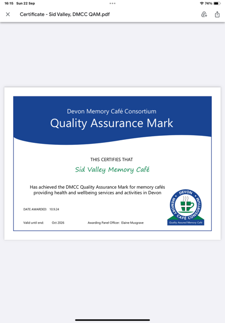 Our work is continuing to create a Dementia Friendly Sidmouth to support everyone living with dementia, and their families, in living their best lives.