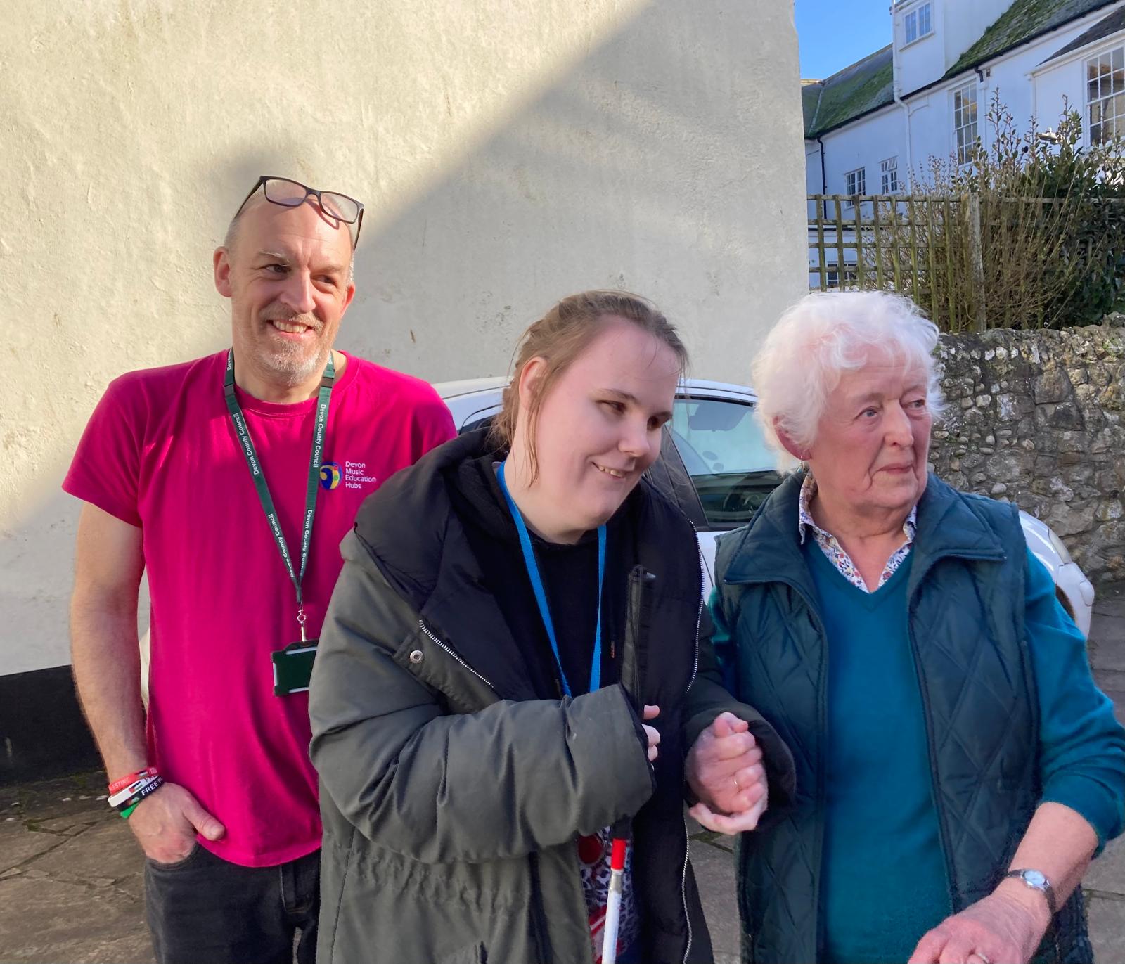 Our superb keyboards player was Ashleigh, who is a boarder at InFocus, the Exeter charity for young people living with visual impairment and other complex needs. She was accompanied on violin by Tom Deam of Devon Music Education and her enabler, Angie. They were supported by our own resident musician, Lorna and by some good, hearty singing from the Memory Cafe members, too.